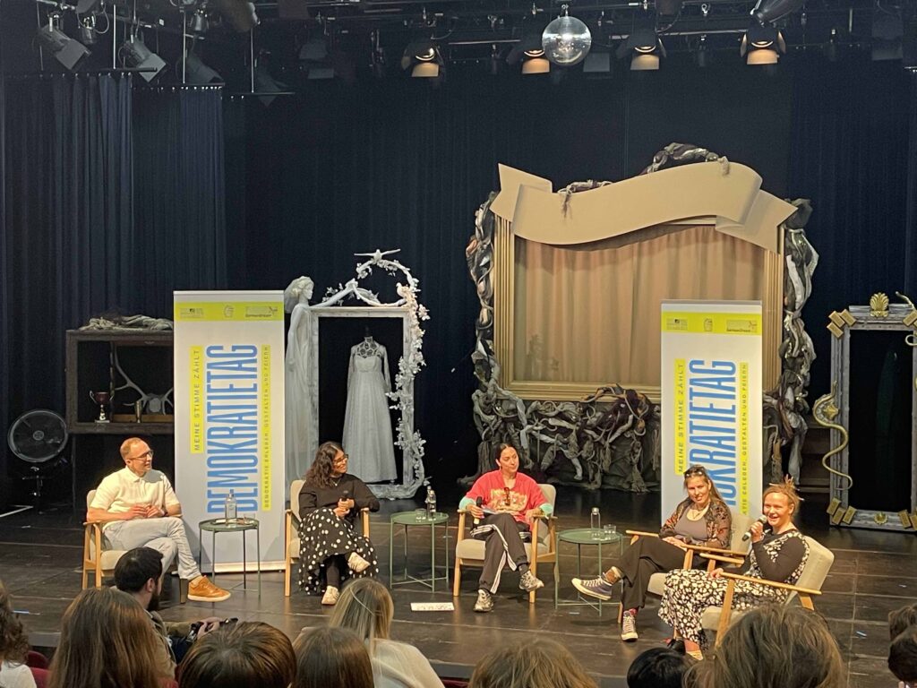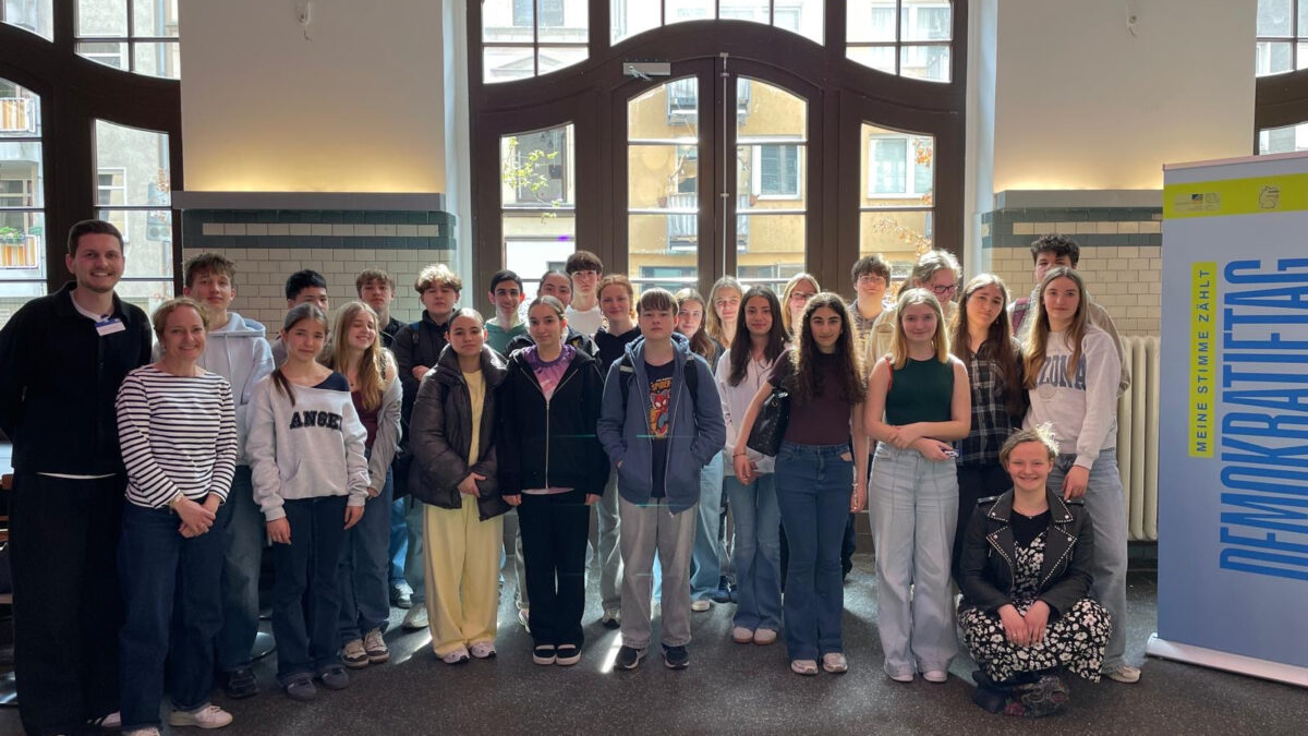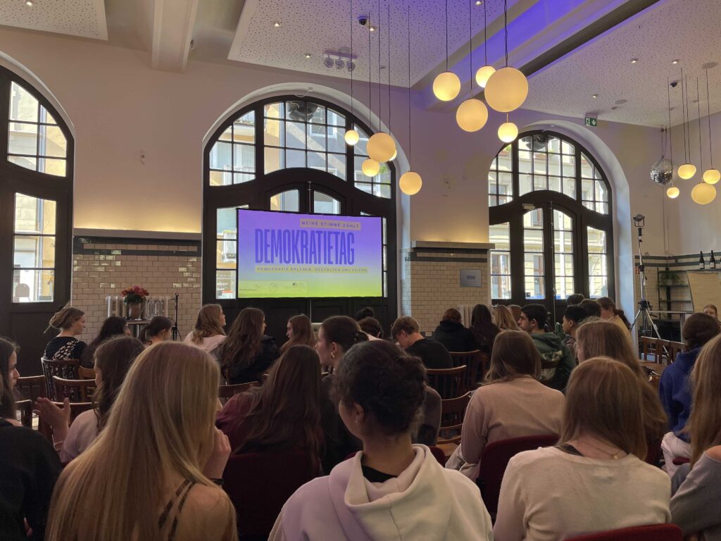 19. April 2026Unter dem Motto „Meine Stimme zählt – Demokratie erleben, gestalten und feiern!“ veranstaltete die Universität Bonn gemeinsam mit der Bundesschülerkonferenz und GermanDream einen Tag im Zeichen der Demokratie. Im COMEDIA-Theater gab es ein buntes Programm, das u.a. aus Workshops, einer Podiumsdiskussion und einem abschließenden Konzert bestand und bei dem die Klasse 9a, begleitet von Frau Nacken und Herrn Ehrenberg, teilnahm.